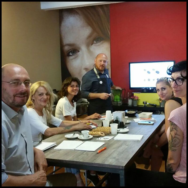 mattino (dalle 9.00 alle 12.30): le 5 M (miscela, macchina, mano dell’operatore, macinadosatore, manutenzione), prove pratiche di estrazione del caffè.