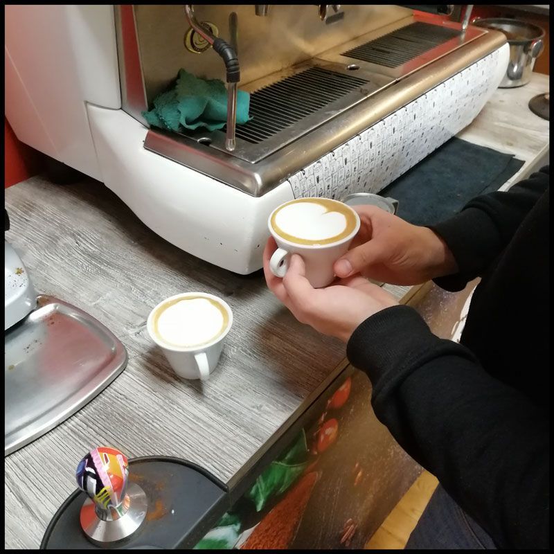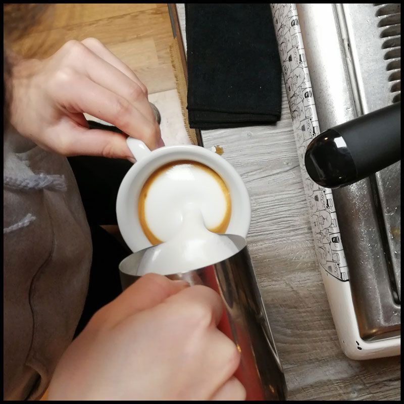 pomeriggio (dalle 13.30 alle 17.00): le 5 L (latte, lattiera, lancia, lavorazione, latte art), prove pratiche di montatura del latte.
